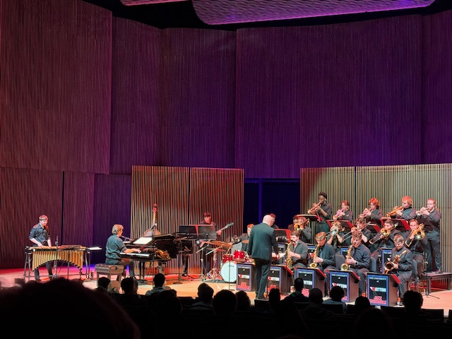The ensemble went all in on its second-to-last piece, Milt “Bags” Jackson eponymously named “Bags’ Groove.” It featured solos from every section of the ensemble: Zade McIntosh on trumpet, Luke Ledwon on vibraphone, Adam Fournier on tenor sax, and Hezekiah Cox on trombone. All played beautifully.